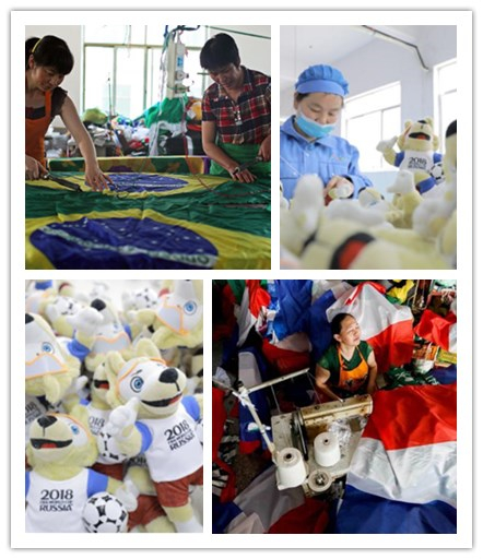 比賽用球中國造,小國旗中國造,吉祥物中國造,保溫杯中國造……場館空調、電梯、LED顯示屏,也都是中國造。